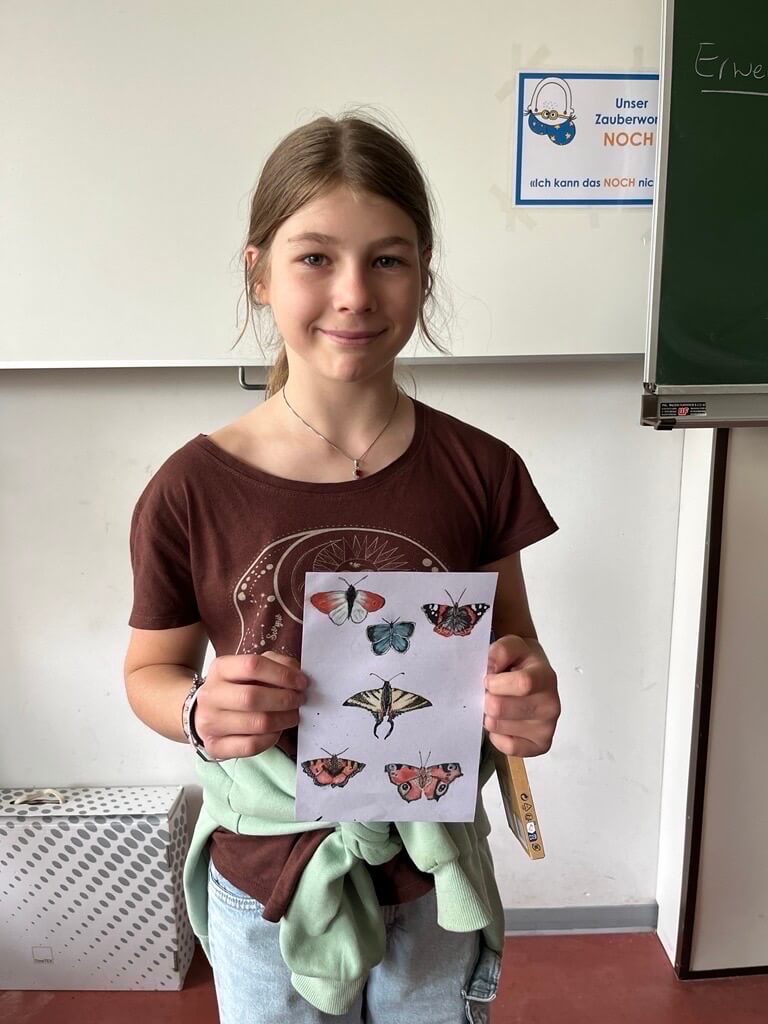 Ihre eindrucksvolle Darstellung verschiedener Schmetterlinge überzeugte durch Detailtreue, Farbkomposition und eine stimmige Umsetzung des Themas „Natur“. Zitas Bild wird das Cover des Studybooks 2025/26